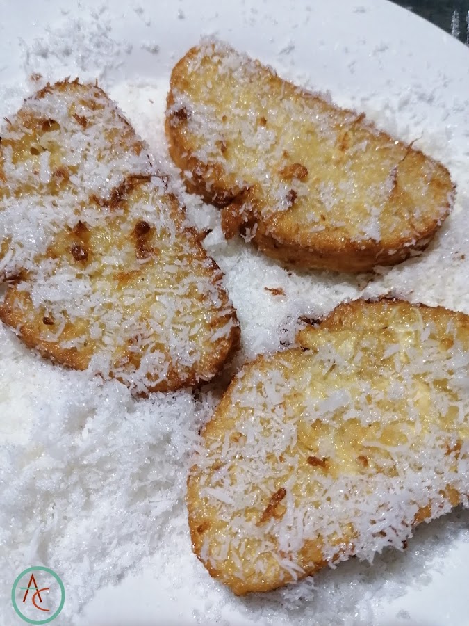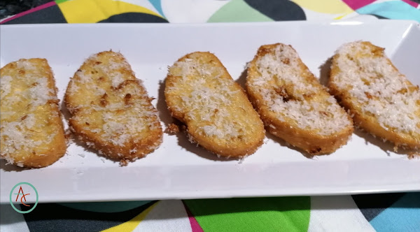Una vez fritas pasarlas directamente por la mezcla de azúcar y coco