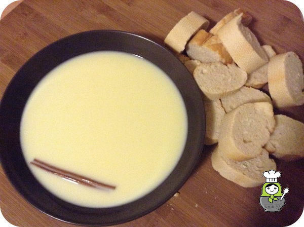 Después calentamos la leche hasta que esté templada. La vertemos en un plato hondo y añadimos el azúcar, el anís, la canela y el colorante (este ingrediente no le dará sabor a las torrijas pero sí un color amarillito muy apetecible). Revolvemos todo bien.