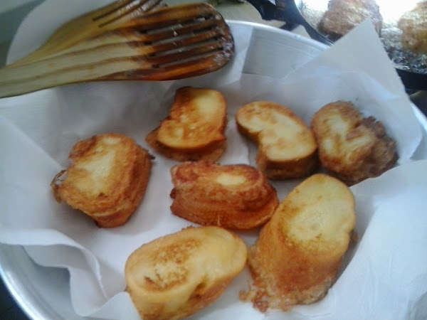 Las sacaremos de la sartén cuando estén doradas. Pondremos las rebanadas en un papel absorbente de cocina para que escurran el exceso de aceíte.