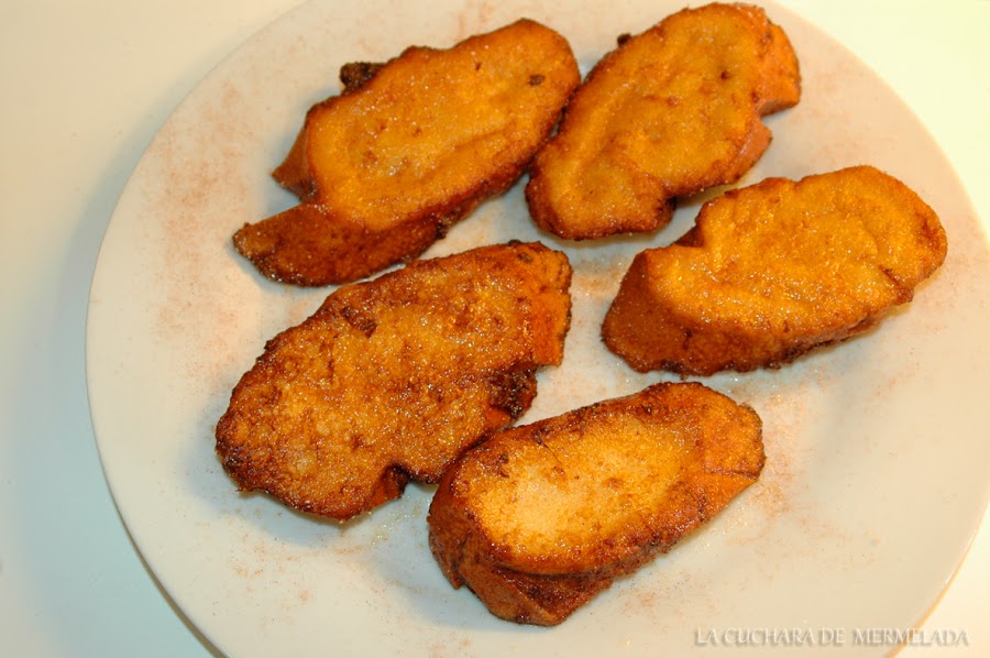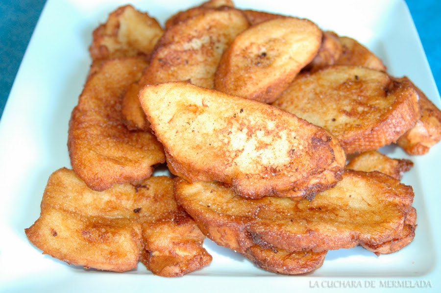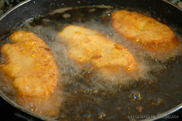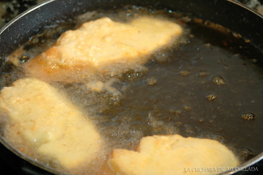 Se fríen pocas a la vez para que no se enfríe el aceite. Tienen que flotar para evitar que las rebabas del huevo que se queda en el fondo se adhiera a la rebanada y queden feas.
