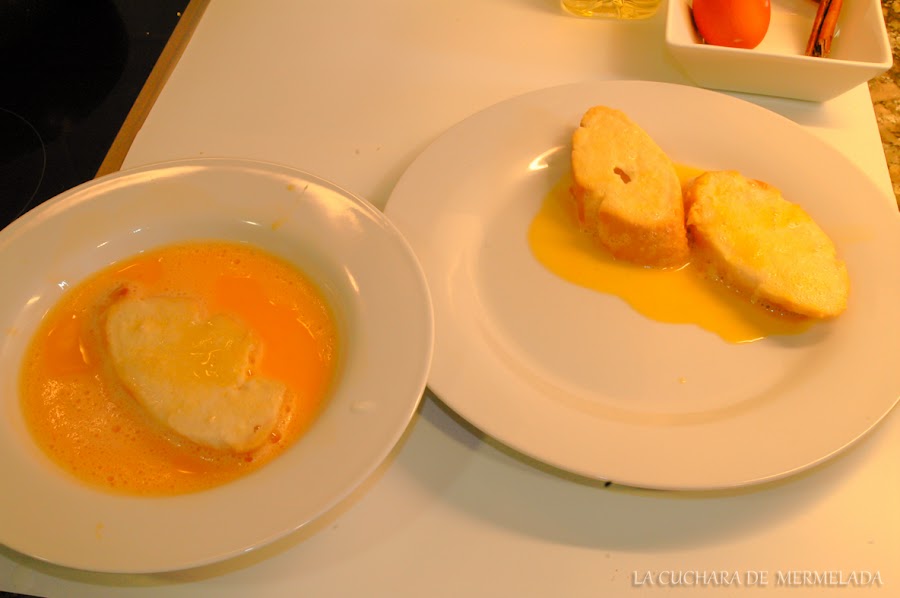 En algunos supermercados como Mercadona venden pan especial en estas fechas típicas de Semana Santa para hacer torrijas y en otros como Eroski el de tipo piña lo tienen durante todo el año que es el que yo he utilizado y lo podéis ver en la foto de los ingredientes.