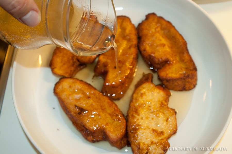 Una vez fritas se rocían con este jarabe y se deja que lo absorba.