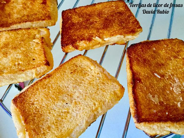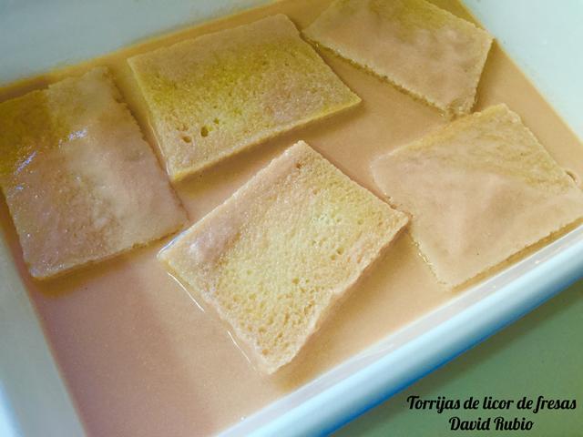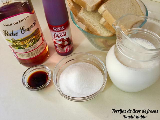 En esta ocasión, como me gusta mucho la fresa, y aprovechando que tengo licor de fresas de mis buenos amigos de Padre Evencio , quise preparar unas ricas torrijas de licor de fresas y además bañadas en un impresionante almíbar con su toque de licor también.