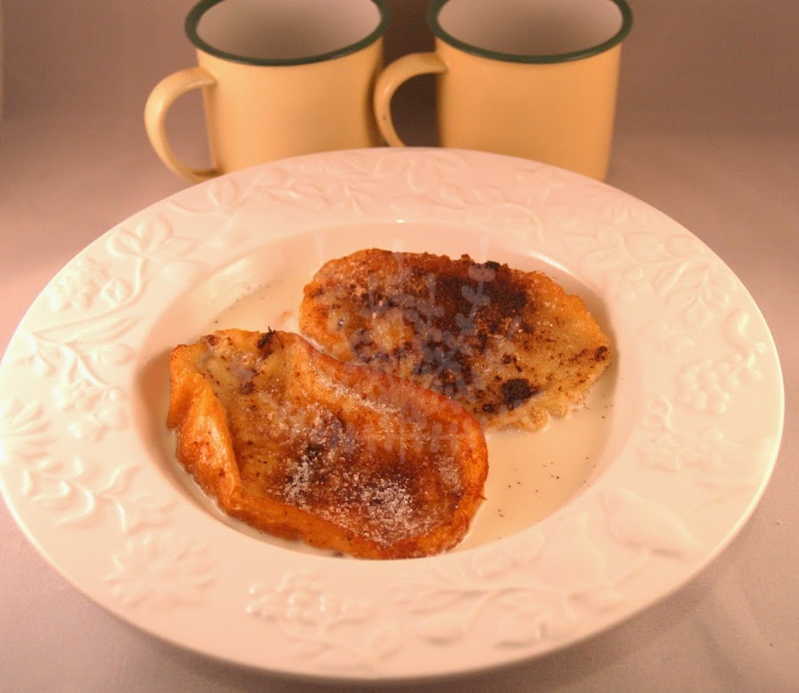 Recordáis la leche que nos ha sobrado pues bien la ponemos en un plato y encima las torrijas y por ejemplo esa es la manera que más le gustan a Rodrigo, porque la leche esta dulce con el aroma de la naranja y la canela y a él le encanta que las torrijas se vuelvan a mojar en esa leche, la verdad es que es otra manera de tomarlas, o secas o con leche.