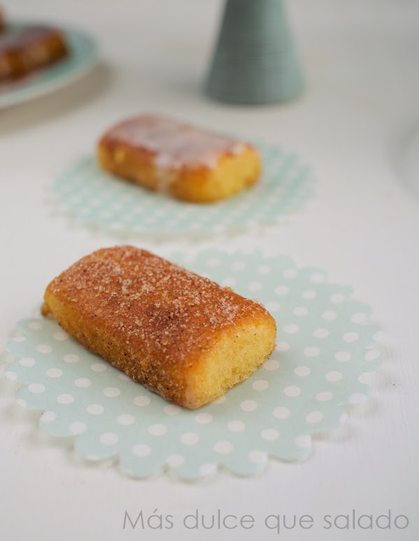 La mitad las he rebozado con azúcar y canela y el resto las he cubierto con un glaseado de limón que nos ha encantado. Os recomiendo que probéis las dos versiones.