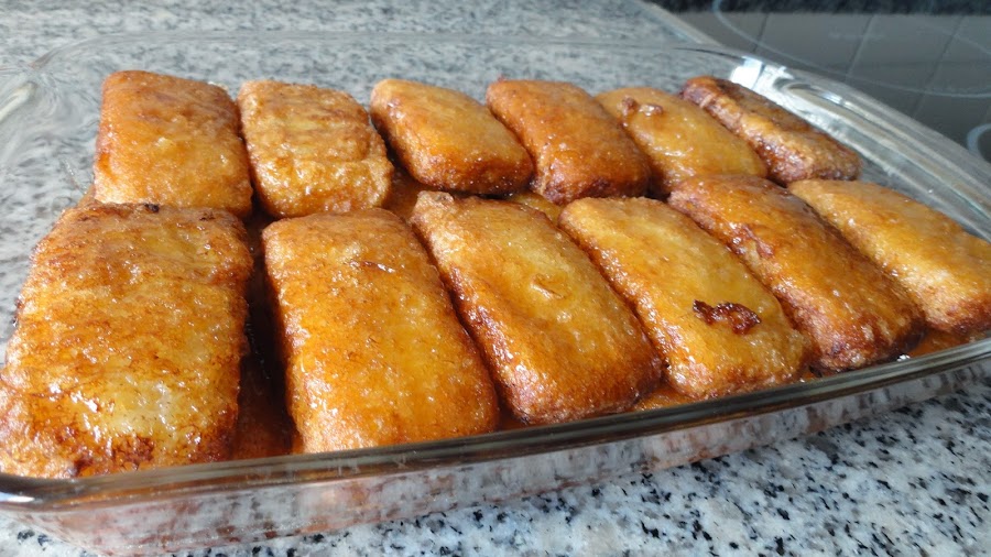 Mientras se templan ponemos a calentar la miel, con un chorrito de agua y otro de ron y dejamos hasta que hierva. Ponemos las torrijas-sobaos en una fuente, las pinchamos con un palillo por varios sitios y vamos echándole el almíbar de la miel por encima. Dejamos enfriar bien en el frigorífico y las tomamos fresquitas.