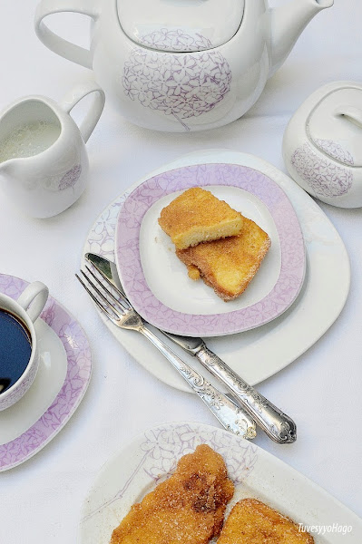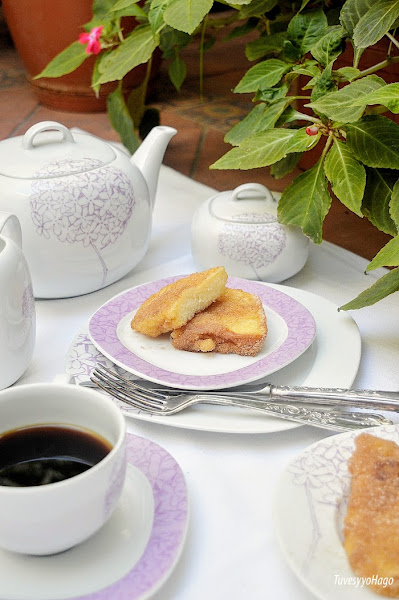 La única diferencia con las torrijas de pan tradicionales es que al estar hechas de bizcocho la miga empapa mucho más que el pan y quedan mucho más jugosas.