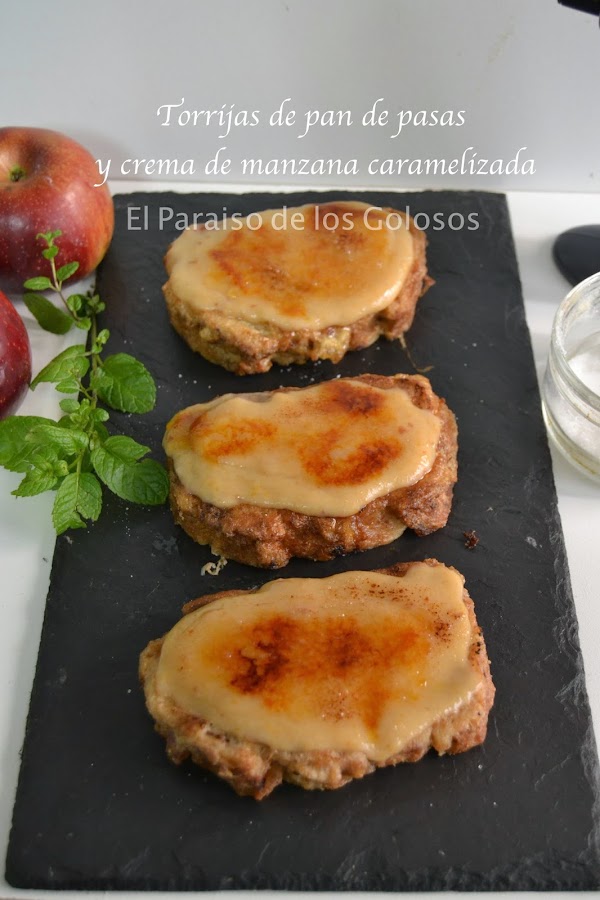 Torrijas de Pan de pasas y crema de Manzana Caramelizada.
