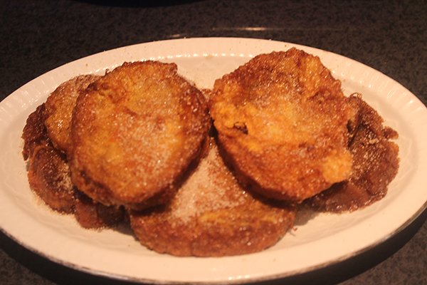 Mezclamos azúcar y canela y pasamos por esta mezcla las rebanadas que hemos frito aun calientes.