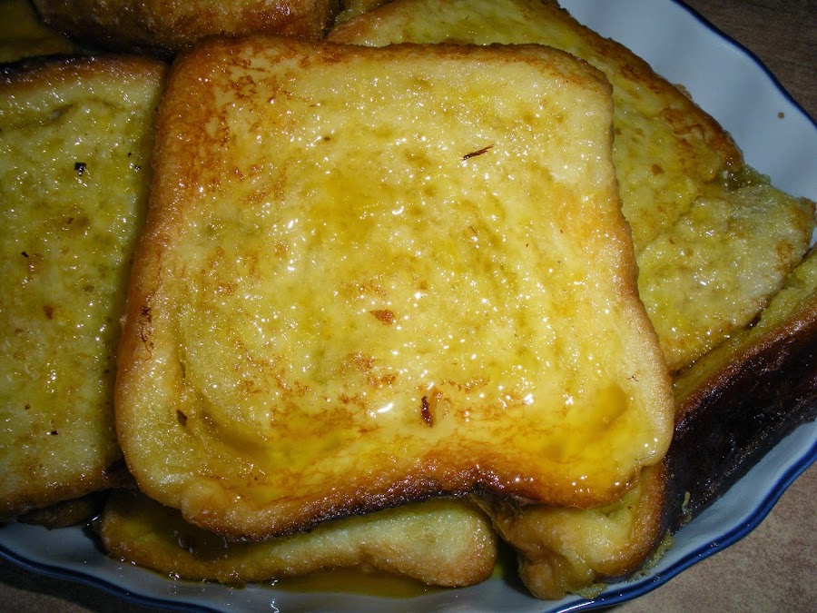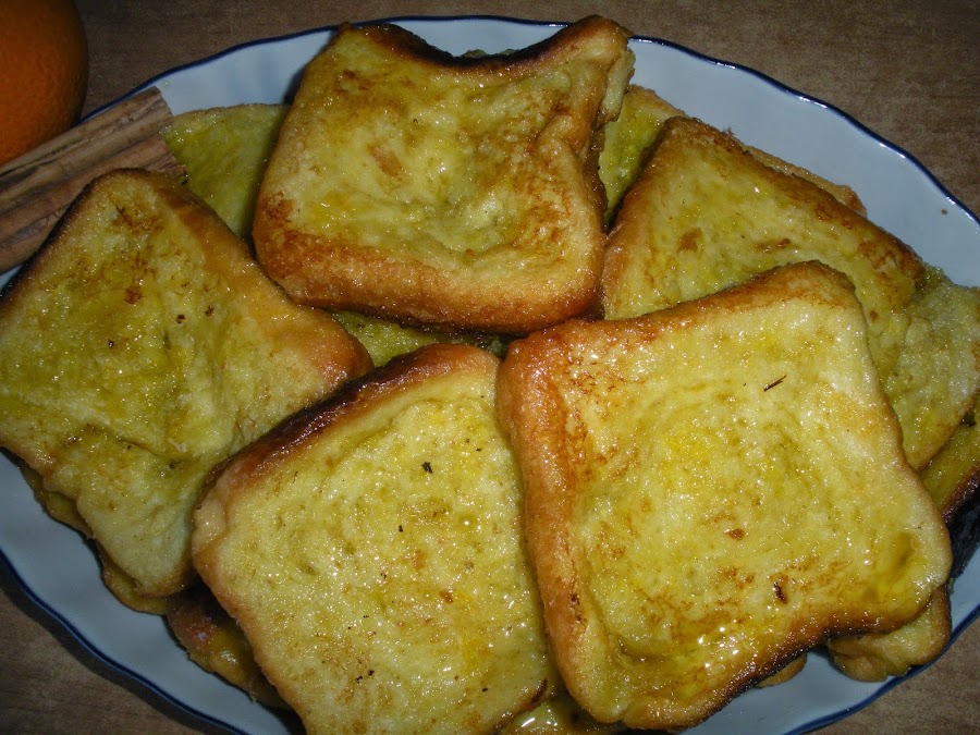 Una vez estén fritas y servidas en la fuente la bañamos con el almíbar de naranja y miel.