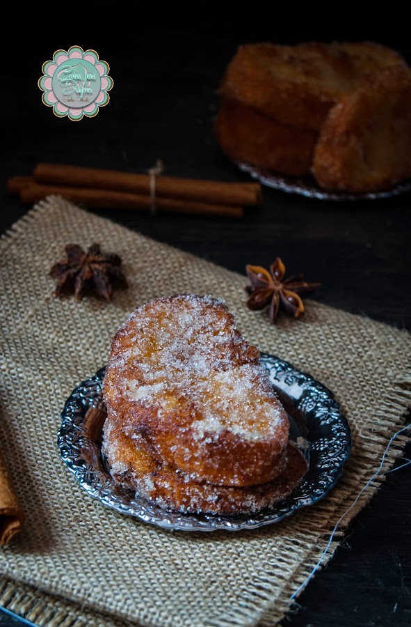 Con el paso de los años, cuando cada una tenía su propia casa o bien seguíamos quedando en casa de mis padres, o bien cada una hacía las suyas y luego las compartíamos. Realmente es una receta tradicional para compartir, por eso os la traigo, aunque en unas circunstancias diferentes, os explico: este año no pensaba yo ni hacer ni comer torrijas, la verdad es que he estado muy ocupada y. si me permitís una confesión, no quería sobrecargarme de azúcar y calorías, pero hoy hemos ido a ver a mi suegra y allí estaban, esperándonos y, ¡qué narices!, es la tradición, así que les he sacado unas fotos y os pongo la receta; como os he comentado, estas las ha hecho mi suegra, pero con mi receta, así que, sin más preámbulos y con su permiso, os las presento.