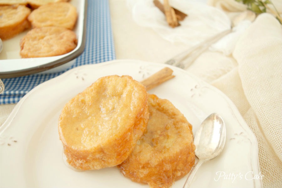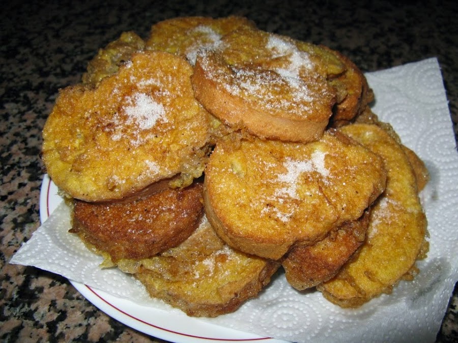 El blog amigo Casa del caminero nos trae unas Torrexas , la receta asturiana de las torrijas, que se fríen y se mojan luego en un almíbar de vino blanco y azucar.