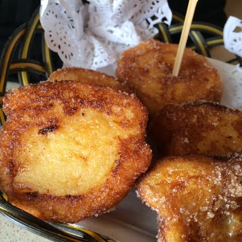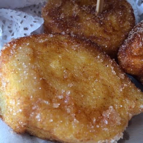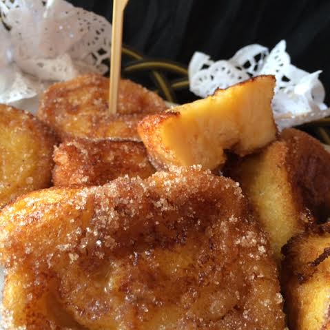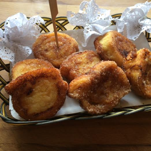Cortamos los rollos en cuatro trozos y rebozamos cada trozo primero por leche aromatizada con canela,azúcar y limón, y luego pro huevo batido y vamos friendo en abundante aceite caliente, pero no demasiado para que no se quemen. Según vamos sacando pasamos los trozos por Canela molida mezclada con azúcar.
