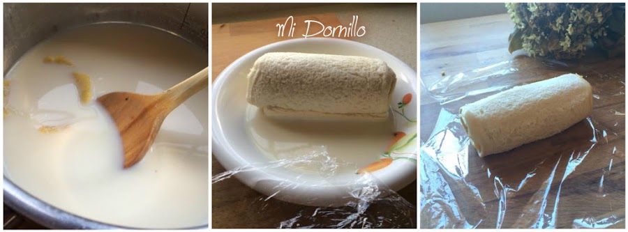 Sacamos los rollos y los pasamos por la leche que debe estar tibia. Y volvemos a envolverlos en el film por un rato, yo los meto de nuevo en la nevera.