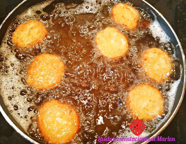 Freímos en abundante aceite caliente de girasol, dándole la vuelta y teniendo en cuenta la temperatura del aceite para que no se doren demasiado.
