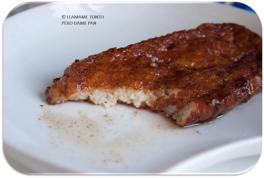 Mientras ponemos a calentar aceite en una sartén, dejamos preparado, en un plato, la mezcla de azúcar y canela. Eso a vuestro gusto, yo lleno un plato hondo de azúcar y espolvoreo con canela (unas 2 cucharadas).