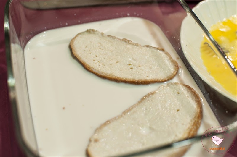 Colamos la leche y la ponemos en un bol.Mojamos en pan en la leche,pasamos por huevo batido y freímos en aceite bien caliente.
