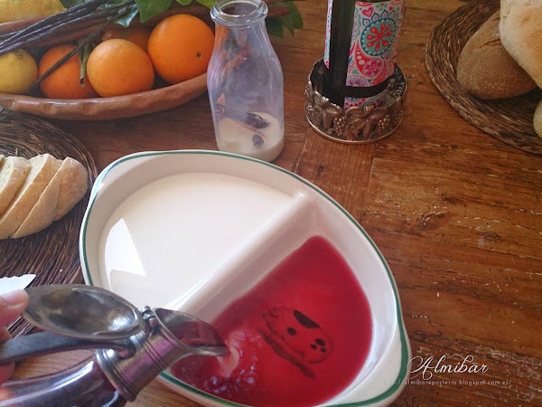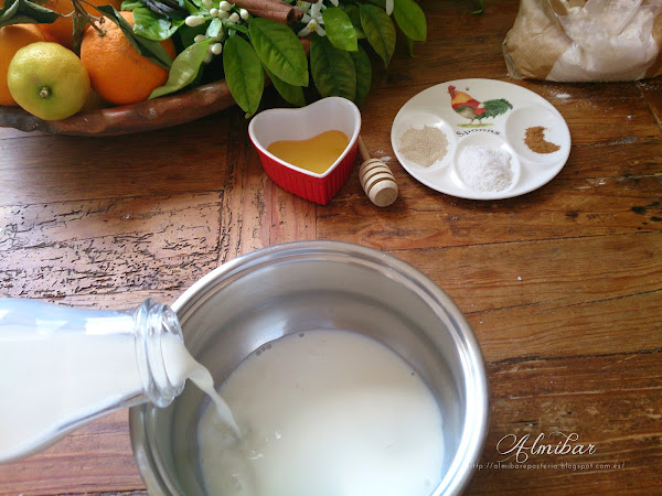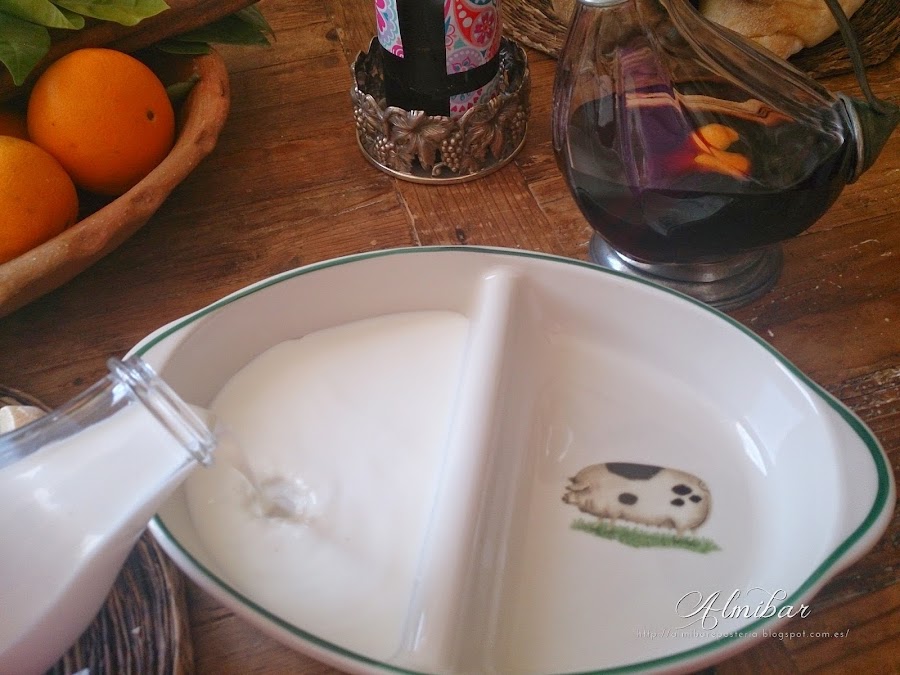 ...llenas un recipiente de leche y vino aromatizado...