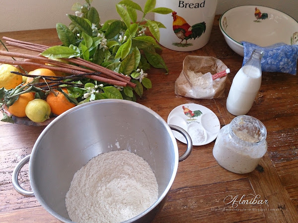 ...comienzas preparando la masa prefermentada con estos ingredientes...