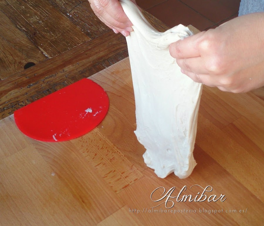 ...con ayuda de la rasqueta vas despegando la masa de las paredes del recipiente y dándole forma...