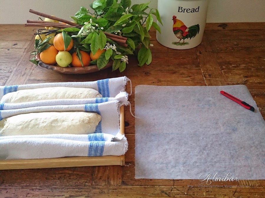 ...colocas paños de lino en una bandeja, dándole forma para colocar las barras...