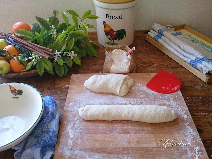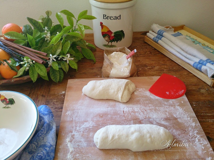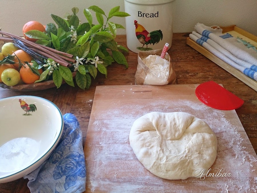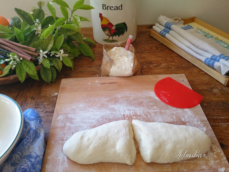 ...quedando la cara lisa de la masa en contacto con la harina...