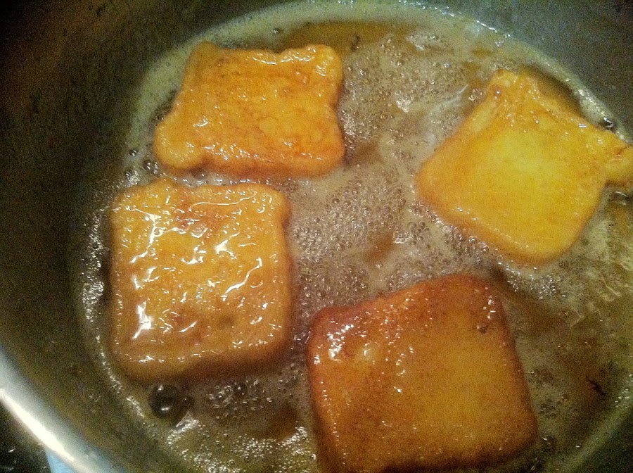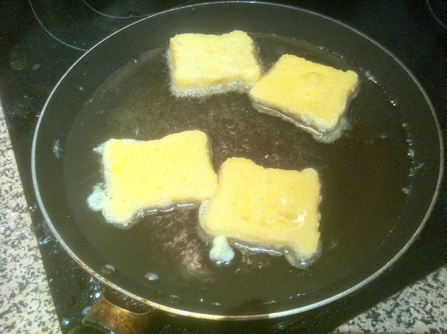 escurrir y pasarlo por el huevo batido pasamos a la sartén que tendremos el aceite bien caliente para que el pan no absorban mucho aceite cuando estén doradas