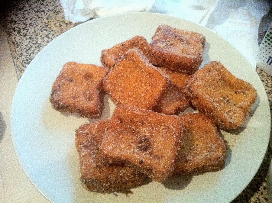 Si no queremos con miel en un cuenco ponemos azúcar y canela para rebozar.