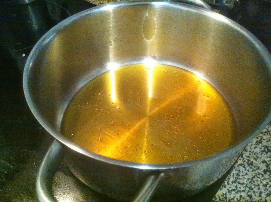 El siguiente paso es enmelar en el cazo que teníamos preparado con la miel con un poquito de agua para aclararla .