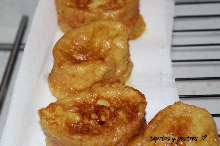 Bromas aparte, ya me ha prometido preparar las torrijas más adelante ( nunca es tarde si la torrija es buena), pero yo tenía que quitarme este antojo que se estaba convirtiendo en una obsesión, así que con su receta he preparado mis primera torrijas, y aunque no son como las de ella, me han quitado el deseo... por ahora.