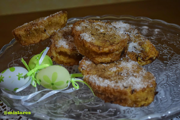 Hay cantidad de versiones alrededor de la receta tradicional de las torrijas, con naranja, café, chocolate.......yo hoy os traigo "las de toda la vida", las que hacia mi abuela, mi madre y hoy, las hago yo. Deseo que el día de mañana las sigan haciendo mis hijos porque es un postre muy humilde y delicioso.