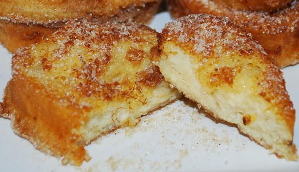 Cortamos el pan en rebanadas como de 1 cm y 1/2 e iremos mojando en esa leche por ambos lados -que queden muy bien empapadas- después en huevo y finalmente freiremos en aceite caliente.