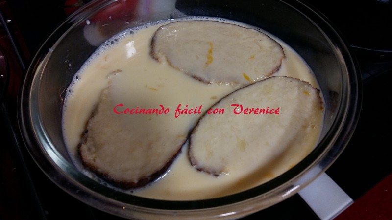 Se prepara la sartén con el aceite, se pone a calentar mientras dejamos introducidas las rebanadas de pan en la mezcla de leche, huevos y azúcar, para que se vayan esponjando.