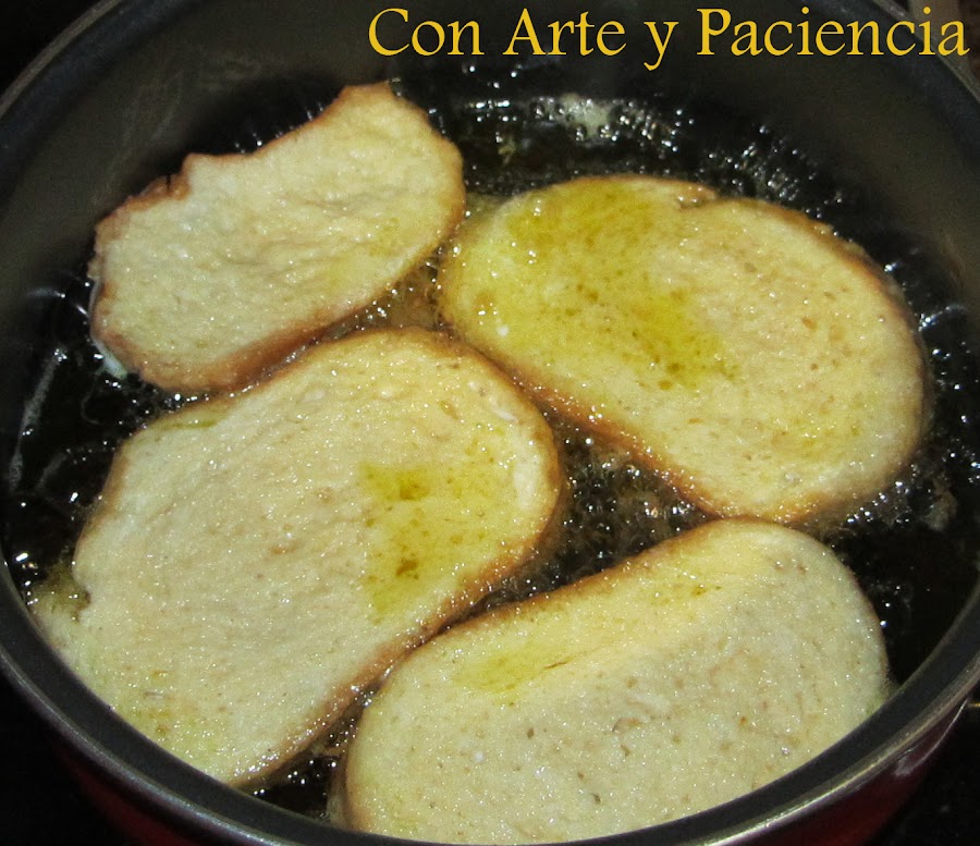 Freímos en abundante aceite de oliva a fuego medio. Doramos ligeramente y colocamos sobre un papel para retirar el exceso de aceite.