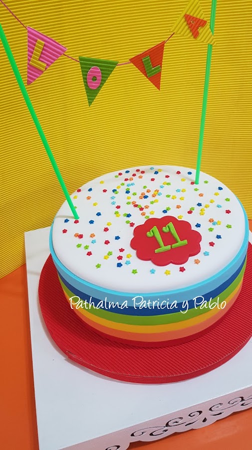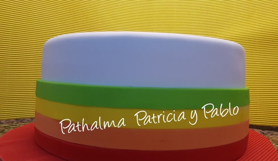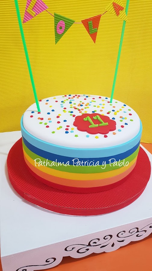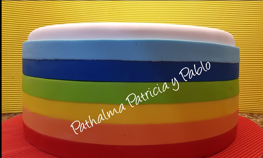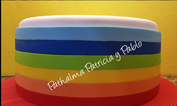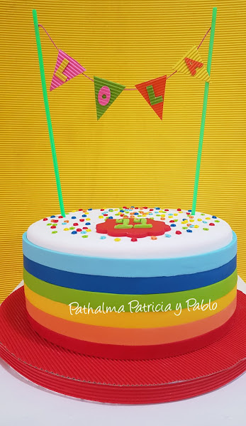 hoy torta arco iris para Lola... nos gusto mucho por su simpleza sencillez y el colorido, su decoración esta hecha en pasta de goma con fondant...abajo le dejamos algunos pasos de su armado....