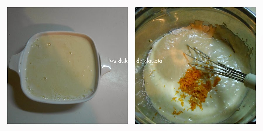 Batir la margarina, aceite, huevos, azúcar y vainilla, formar una crema suave, añadir la ralladura.
