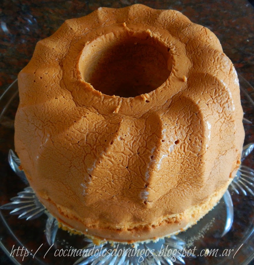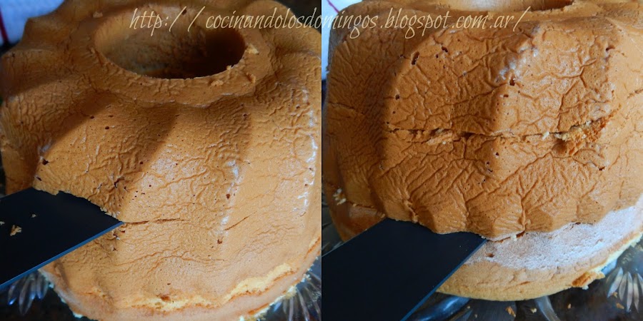 - Para preparar esta torta se usa un molde para torta chiffon, es como el molde tubo (el redondo con el agujero en la mitad) pero se desmonta la base del aro, como nosotros no teníamos este tipo de molde usamos el molde de la torta bundt, que también tiene el tubo en la mitad, pero los laterales tienen texturas y esto hace mas difícil el desmolde.