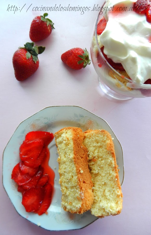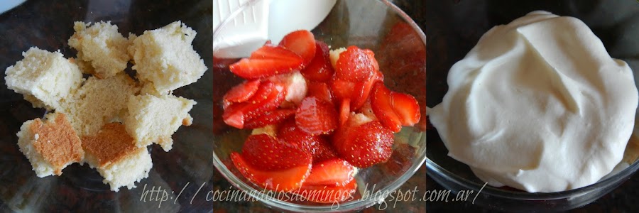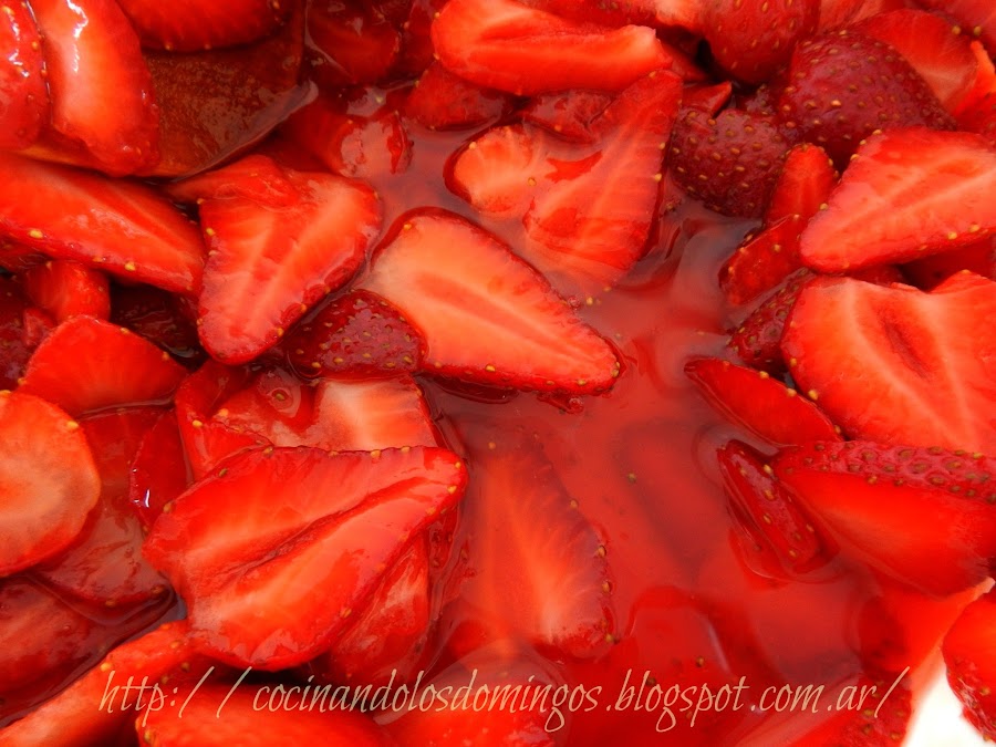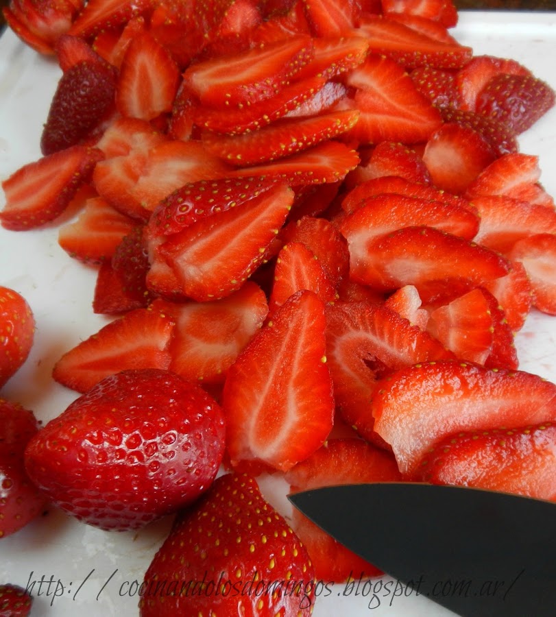 se cubre con la mitad de las fresas y rociamos con su jugo