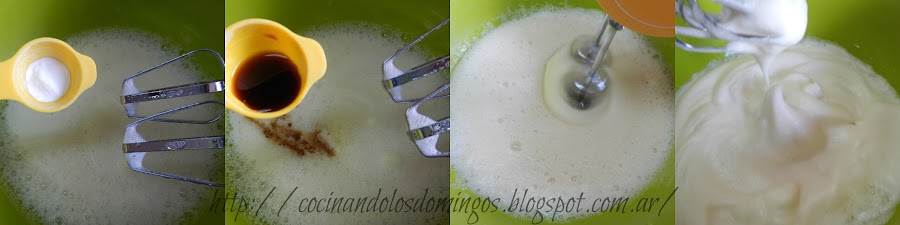 agregamos el cremor tártaro (bicarbonato de soda) y la vainilla y continuamos batiendo hasta que forme picos suaves