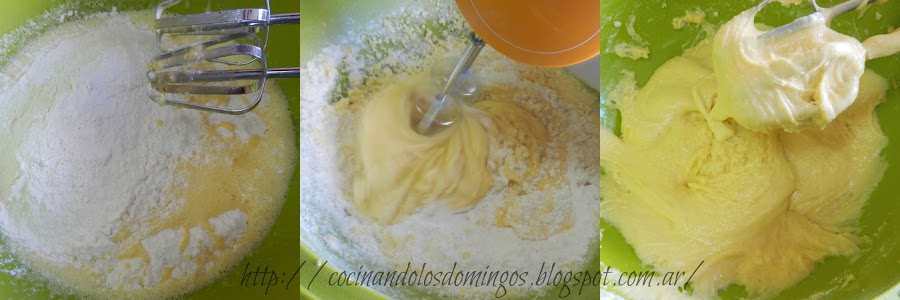 agregamos la mezcla de la harina y revolvemos (la masa va a quedar muy pegajosa)