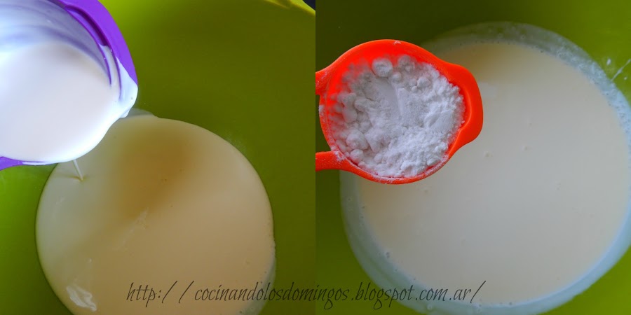 Ponemos la crema de leche y el azúcar pulverizada (impalpable) en un bol o recipiente