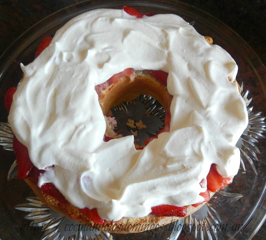 luego otra capas de torta, fruta, crema y decoramos con algo de jugo de las fresas