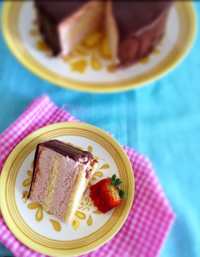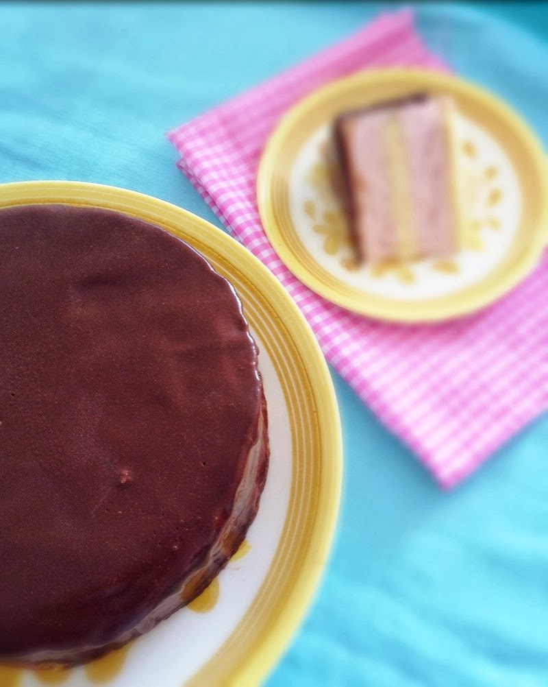 14. Sobre una rejilla bañar la mousse ya desmoldada con la ganache de chocolate y dejar reposar antes de servir.