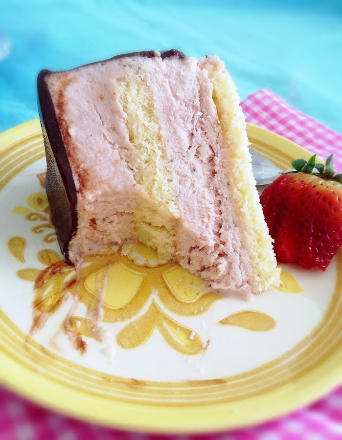 9. Agregar un poco de la mezcla de las fresas a la gelatina para igualar temperaturas y agregar todo de vuelta a la preparación hasta integrar todo (en este paso, el bizcocho ya debe estar horneado y frió)