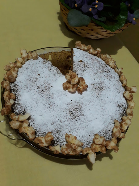En el tazón de la batidora colocamos la mantequilla y azúcar moreno batir 10minutos,luego agregar la vainilla y los huevos batir 3min,cernir harina,polvo de hornear,bicarbonato y sal agregar alternando con la leche,de último agregar las palomitas de maíz y las nueces verter a un pirex redondo de 26cm engrasado y enharinado llevar al horno a 350grados f por 30minutos o al introducir un palillo salga limpio ya listo dejar enfriar y servir solo rociado con azúcar en polvo,con chantilly batida o con bolas helado de vainilla.