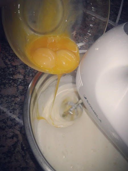 Sin dejar de batir añadir las yemas de en una a una junto con la vainilla.