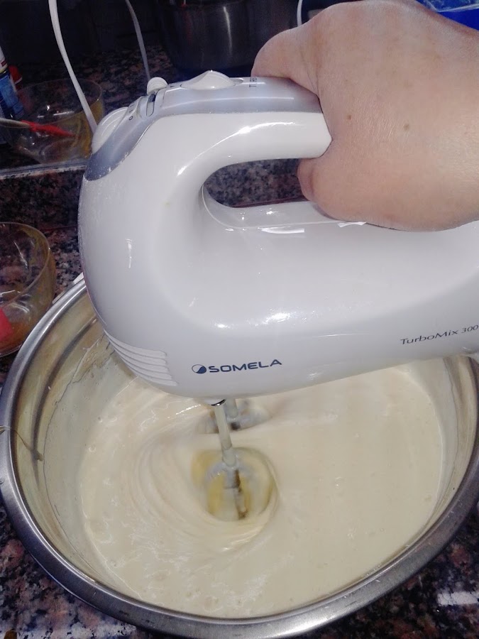 Una vez que el batido este a punto de nieve, dejar de batir e incorporar la harina previamente cernida , con movimientos envolventes.