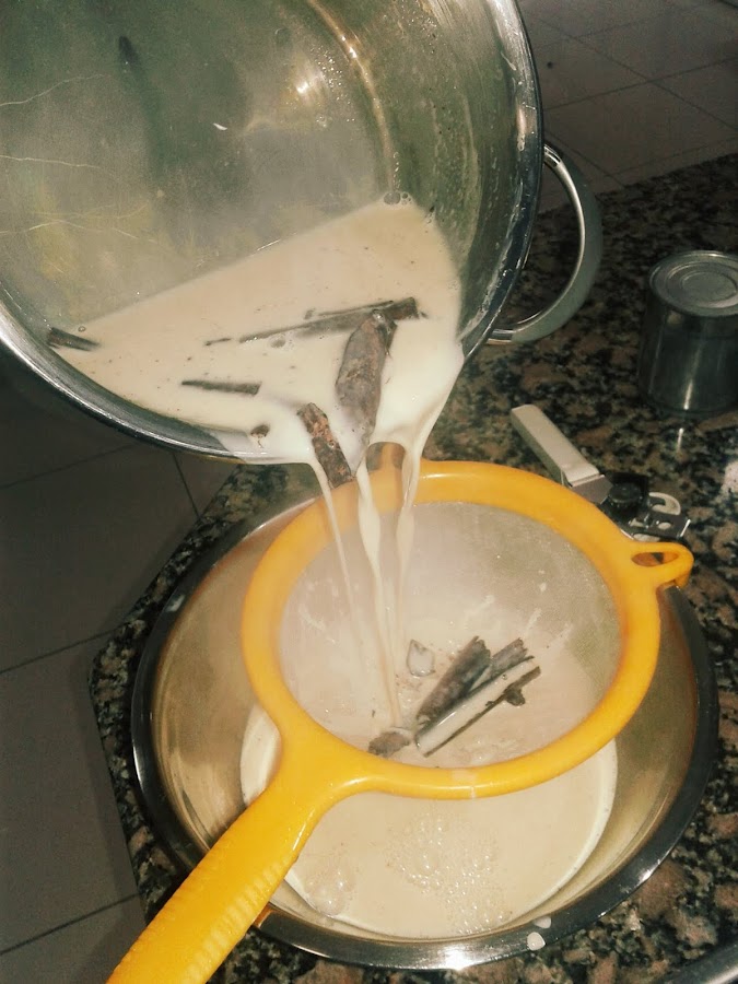 Una vez fria agregar la leche condensada , vainilla , canela en polvo .