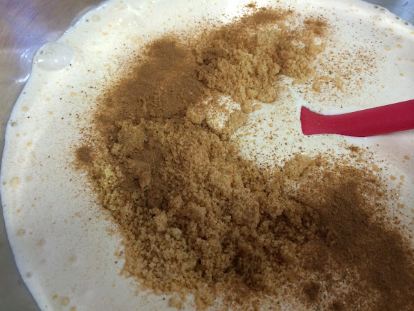 Añadimos las almendras, la canela y la ralladura del limón. Mezclamos con movimientos suaves.