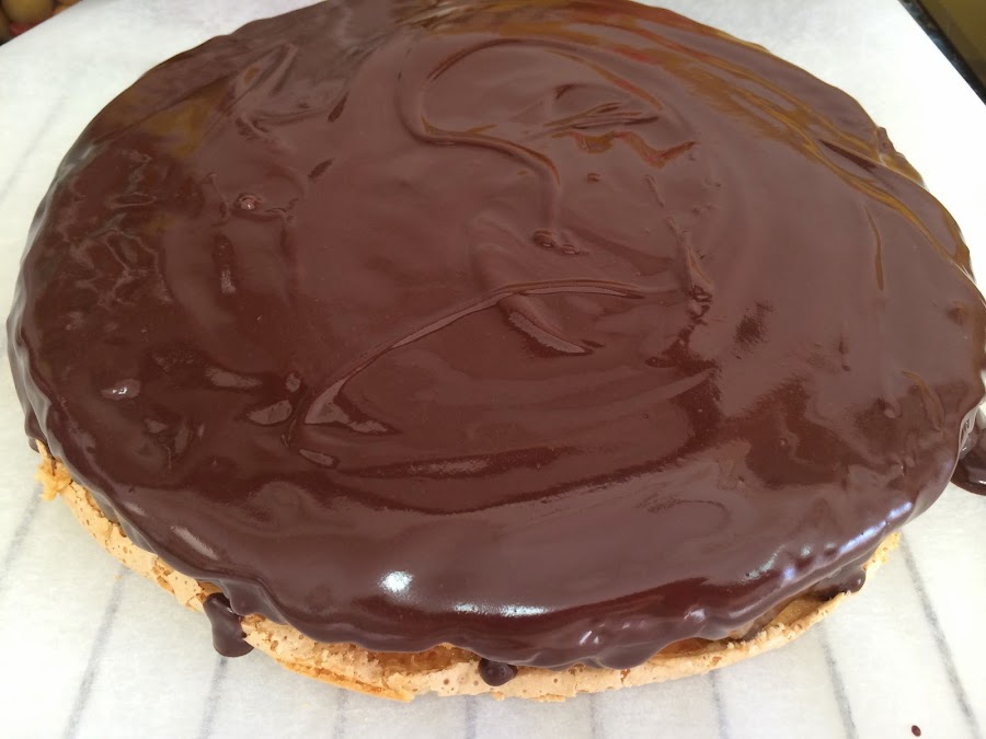 La guardamos en el frigorífico para que solidifique bien la cobertura de chocolate.